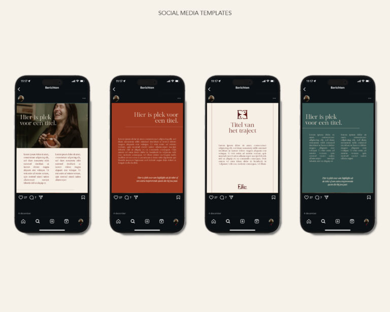 Voor dit project werkte ik aan een rebranding voor Elke, businesscoach voor vrouwen. Samen doken we in de kern van haar bedrijf: wie zij is, waar ze voor staat en wie ze wil bereiken. Vanuit die basis ontwikkelde ik een complete visuele identiteit, van logo en submerk tot kleurenpalet, social media templates en een bijpassende shoot. Het resultaat is een branding die warm en krachtig aanvoelt en die haar verhaal versterkt, voor zowel haarzelf als de vrouwen met wie ze werkt.